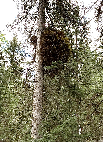 Spruce tree with a large “witches’ broom” used by Norma as branch resting habitat.