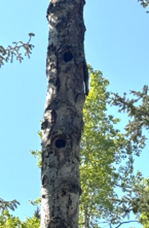 Large-diameter aspen tree with cavity openings where Norma gave birth to three kits.